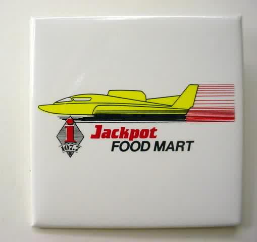 1995 PIZZA TIME EXIDE white ceramic hydroplane pinback button. Extremely limited production. Only 25 made. gold lettering on white. High glazed ceramic material. Has locking clasp style brooch pin on reverse. oval shape. 1.9" wide. reverse is clean; no rust. colors bright and vivid. no flaws. Superior; mint condition. 199.00