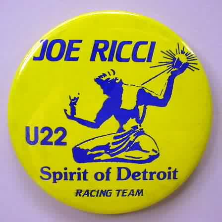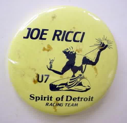 1996 U-7 DETROIT #020 hydroplane pinback button. 2.25" diameter celluloid. Reverse is clean; no rust. colors bright and vivid. no flaws. superior condition. 16.50