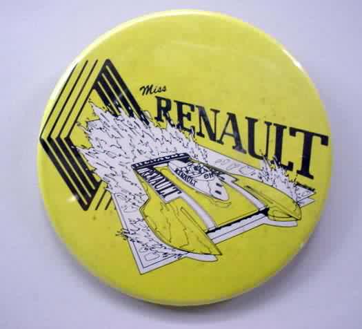 MISS RENAULT. 3" celluloid. black & white on yellow. 3.00