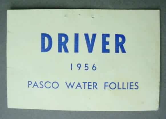 1956 PASCO WATER FOLLIES Driver Pass. approximately the size of a business card. No creases. staple holes on top edge. 15.00