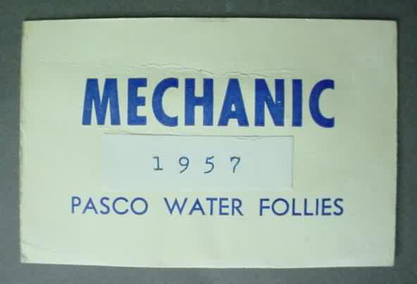 1957 PASCO WATER FOLLIES Mechanic Pass. approximately the size of a business card. No creases. 12.50