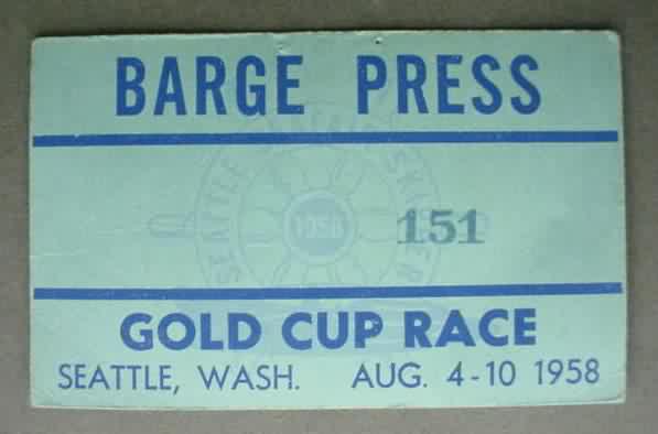 1958 SEATTLE SEAFAIR Barge Press Pass. #151. approximately the size of a business card. No creases. 14.00