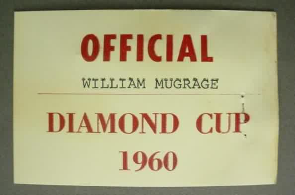 1960 DIAMOND CUP OFFICIAL Pass. Made out to WILLIAM MUGRAGE. approximately the size of a business card. pinholes. No creases. 27.50