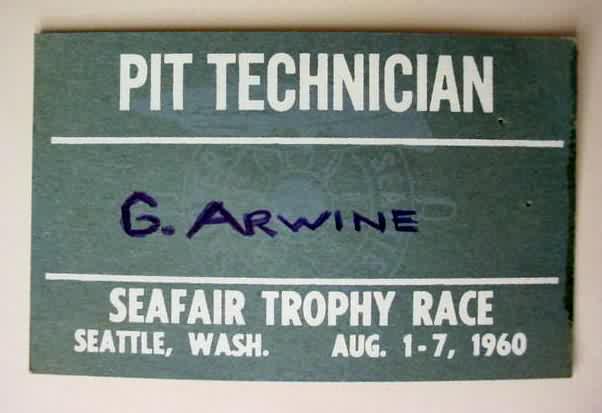 1960 SEAFAIR Pit Technician Pass. approximately the size of a business card. made out to G. ARWINE. minor pinholes. 12.00