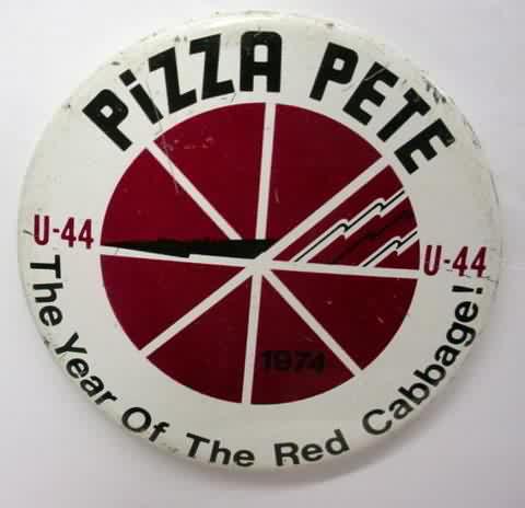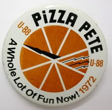 1972 U-88 PIZZA PETE - "A Whole Lot of Fun". 2.25" diameter tin lithographed pinback button. backside is clean; no rust. 4.50