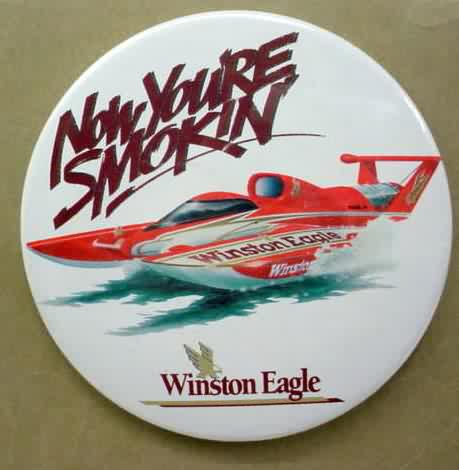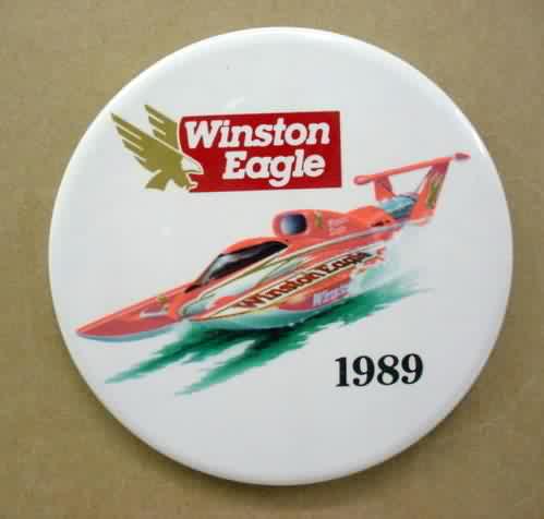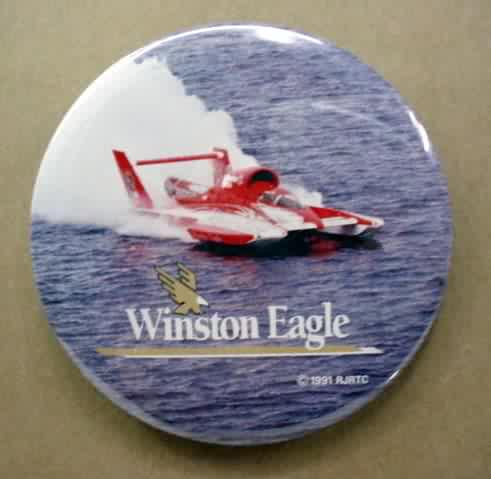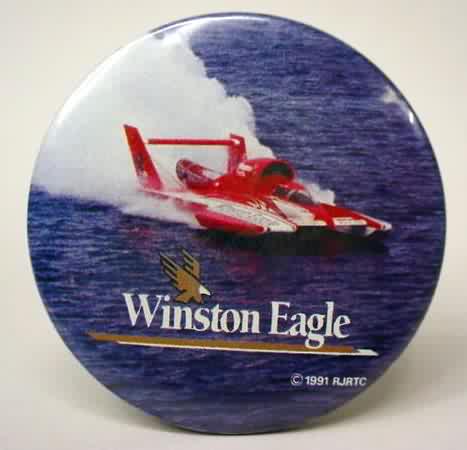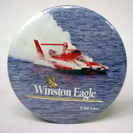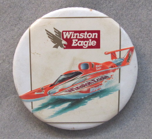 1993 WINSTON U-10 Above photo hydroplane pinback button. 2.25" diameter celluloid. Reverse is clean; no rust. colors bright and vivid. no flaws. superior condition. sorry sold