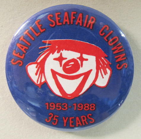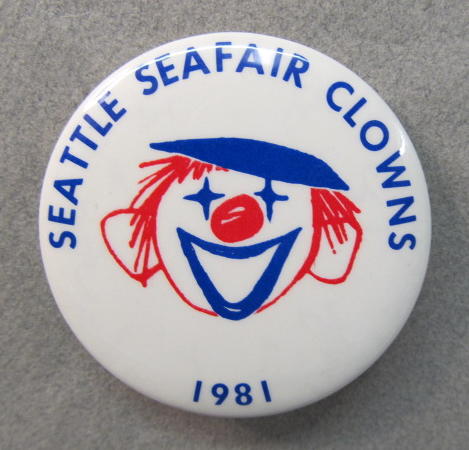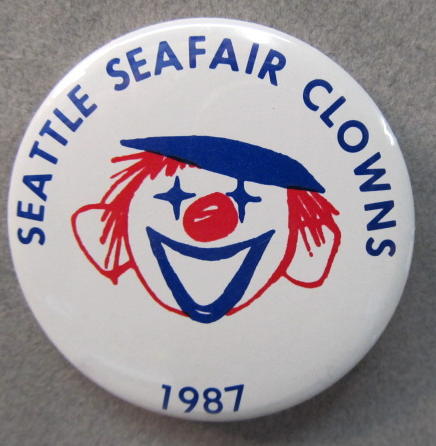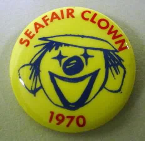 1970 SEAFAIR CLOWN. Seattle. red and blue on light yellow. 1.5" diameter celluloid pinback button. mint. 7.50