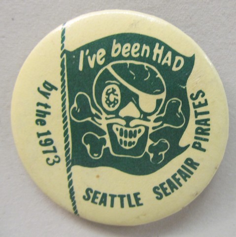 1973 SEATTLE SEAFAIR PIRATES. 2.25" diameter celluloid pinback button. near mint. 8.50