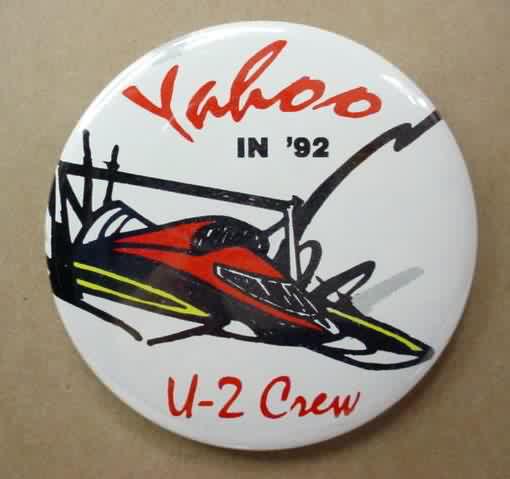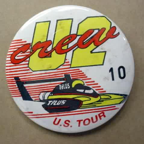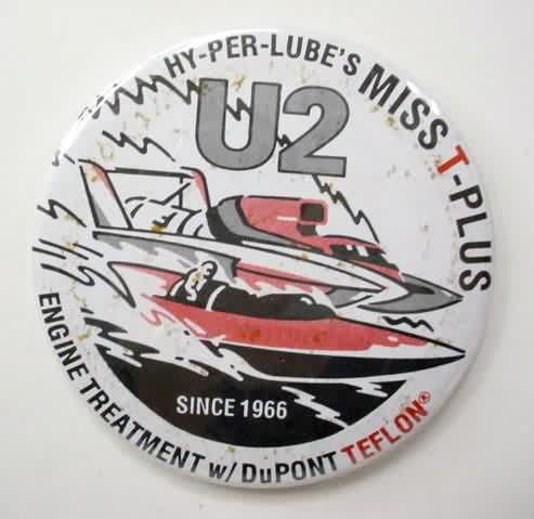 1993 T-PLUS U2 CREW U.S. TOUR hydroplane pinback button. spotting. 2.25" diameter celluloid. filler. 5.00